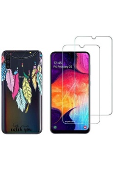 Coque et 2 films pour Samsung Galaxy A50 - Coque fantaisie + 2 Films en Verre trempé résistants Anti Casse écran (Attrape rêves)