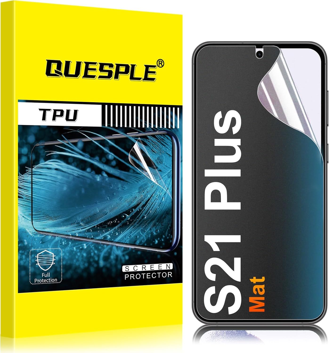 QUESPLE [3 Pièces] Mat Protection écran pour Samsung Galaxy S21 Plus, Anti-empreintes, Anti-éblouissement Matte TPU Film Protection écran, Sans Bulles, Compatible avec Lecteur d’Empreinte