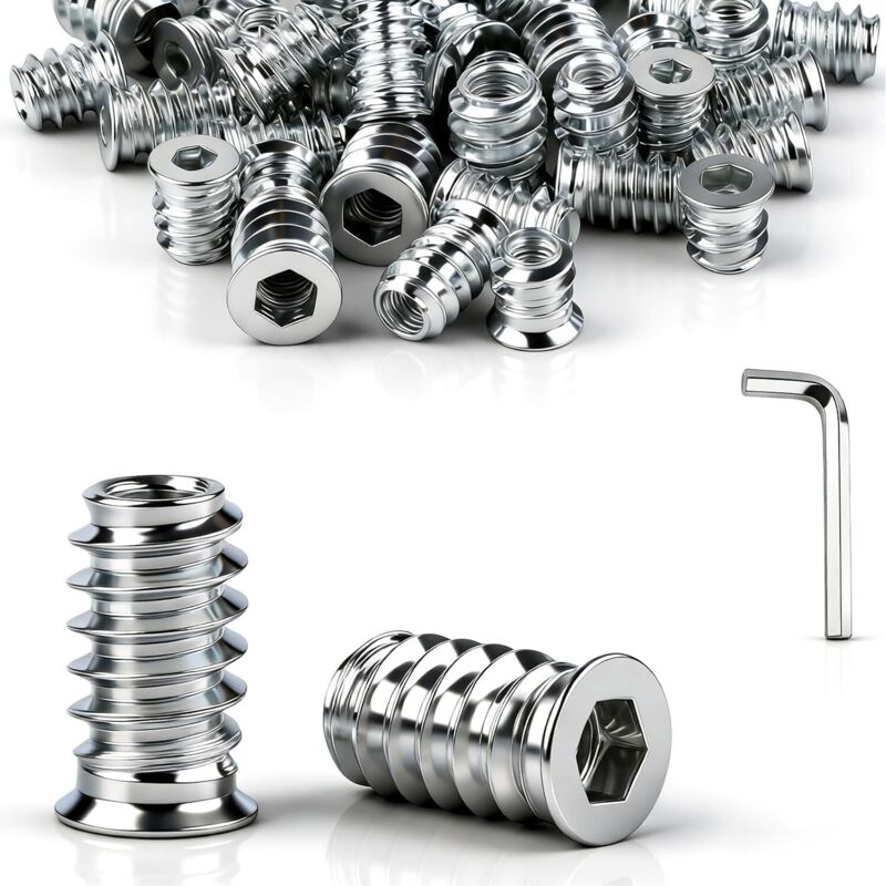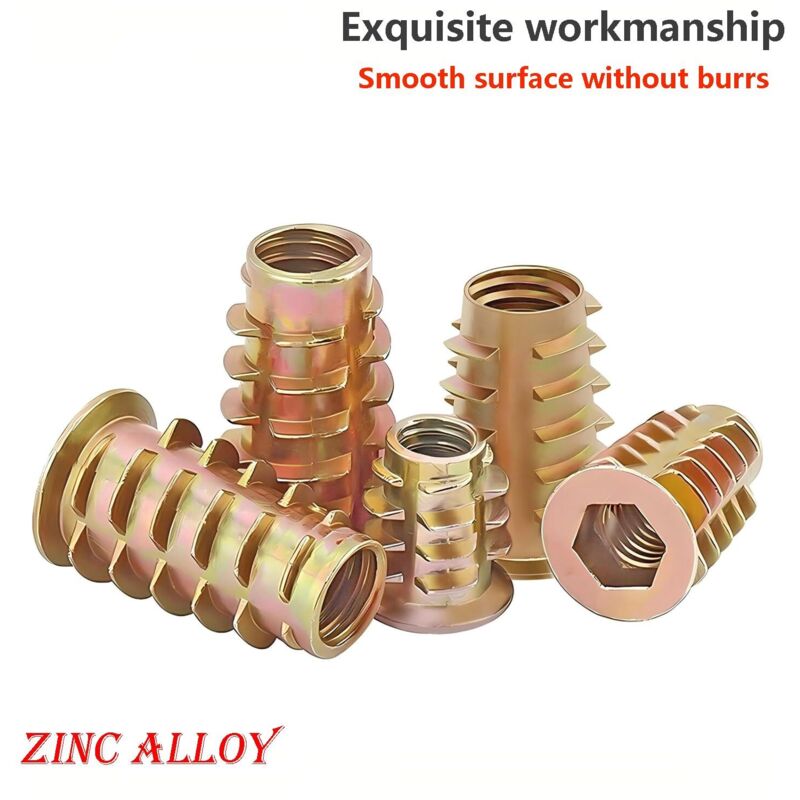 Insert fileté en bois vis en alliage de zinc M4 M5 M6 M8 M10 écrou fileté à six pans creux pour meubles en bois (120 pièces)