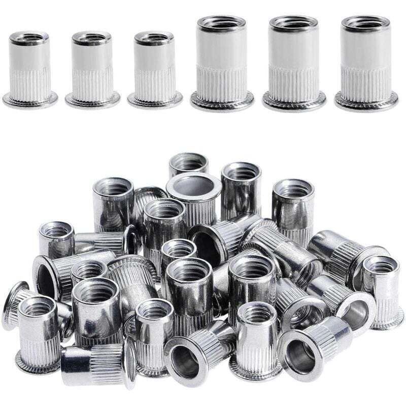 [JAMAIS UTILISÉ] 100 Pièces Rivet Ecrou M6 M8, Écrous à Rivets en Acier Inox, Tête Plate Ecrou Insert Assortiment Kit pour Bois Meubles, Ecrou M6