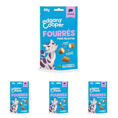 Edgard & Cooper friandises pour Chat, fourrées au Saumon (1x60g), Riches en Viande fraîche, sans céréales, Moins de 2 kcal, ingrédients naturels, sans Sucre ajouté (Lot de 4)