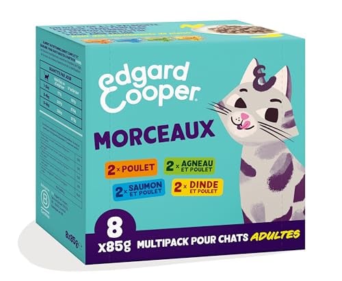 Multipack 8X85G paté en morceaux et en sauce pour chat adultes poulet, saumon agneau et dinde Edgard cooper