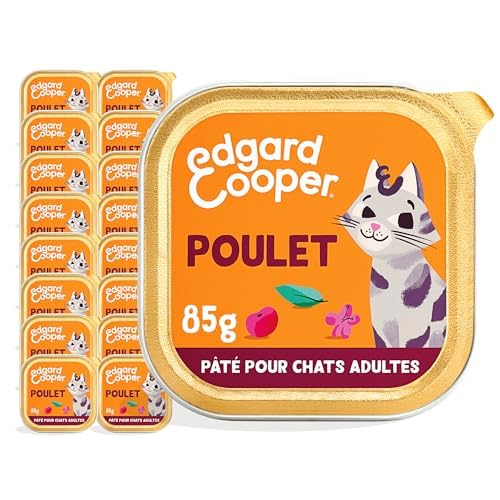 Edgard & Cooper Pâté pour Chat, Adulte, (Poulet, 85g x 16), Viande fraîche et protéines de qualité, Vrais ingrédients pour Chat, Pâté pour Chat stérilisé et Actif (Lot de 2)