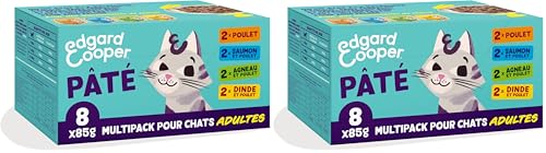 Edgard & Cooper Pâtée pour Chat, Multipack, (Poulet/Saumon/Dinde/Agneau 8 x 85g), pour Chats stérilisés ou Actifs, Viande fraîche avec ingrédients naturels (Lot de 2)