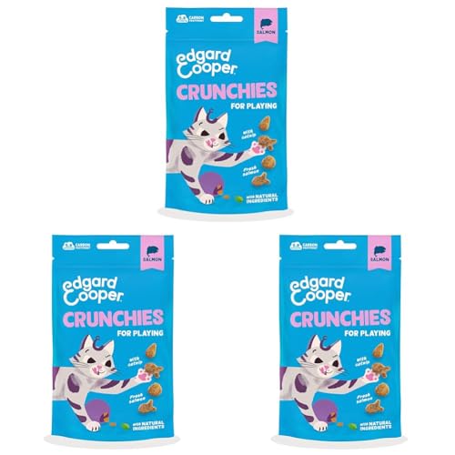 Edgard & Cooper Friandises pour Chat, Crunchies au Saumon (1x50g), sans Céréales, Riches en Viande Fraîche, avec Herbe à Chat, Ingrédients Naturels, sans Sucre Ajouté (Lot de 3)