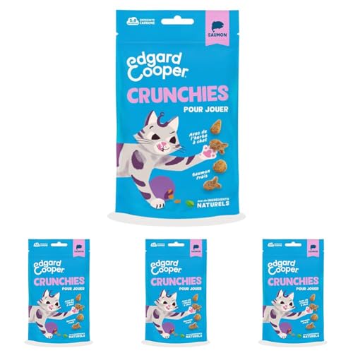 Edgard & Cooper friandises pour Chat, crunchies au Saumon (1x50g), sans céréales, Riches en Viande fraîche, avec Herbe à Chat, ingrédients naturels, sans Sucre ajouté (Lot de 4)