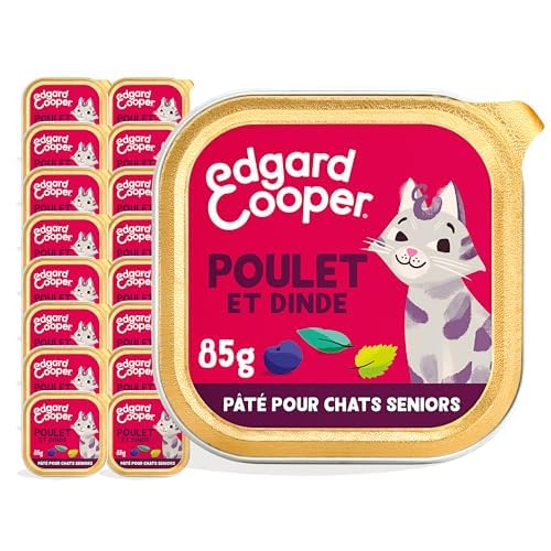 Edgard & Cooper Pâtée Pour Chat Senior Stérilisé, Poulet Dinde 16 x 85g, Nourriture humide Sans Céréales Ingrédients naturels, Riche en protéines, Sans sucres ajoutés