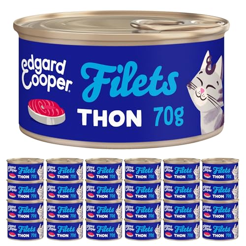 Edgard & Cooper Filet pour Chat Adulte Filet Chat Sans céréales Nourriture Naturelle Lot 24 x 70g Thon frais, Alimentation Saine savoureuse et équilibrée