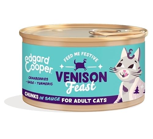 Edgard Cooper pâtée chat morceaux Festive Feast (Gibier, 18 x 85g, sans céréales ni gluten, viande fraîche, riche en protéines, ingrédients naturels
