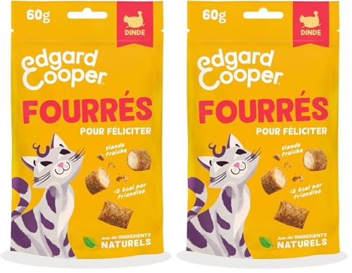 Edgard & Cooper friandises pour Chat, fourrées à la Dinde (1x60g), hypoallergéniques, Riches en Viande fraîche, sans céréales, Moins de 2 kcal, ingrédients naturels, sans Sucre ajouté (Lot de 2)