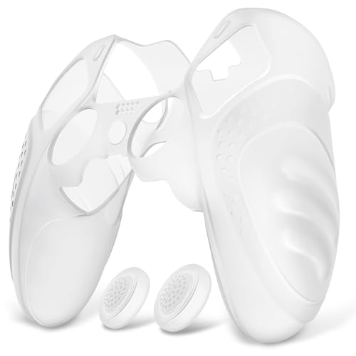 PlayVital Coque Protection pour ps5 Edge Manette,Housse Silicone avec 6 Capuchon Joystick pour ps5 Edge Controller Cover Skin,Anti-Dérapante Accessoire-Blanc,3D Studded Edition