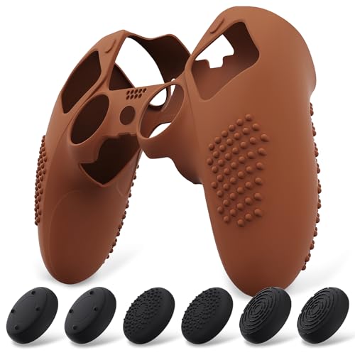 playvital Coque Protection pour ps5 Edge Manette,Housse Silicone avec 6 Capuchon Joystick pour ps5 Edge Controller Cover Skin,Anti-Dérapante Accessoire-Brun Signal,3D Studded Edition