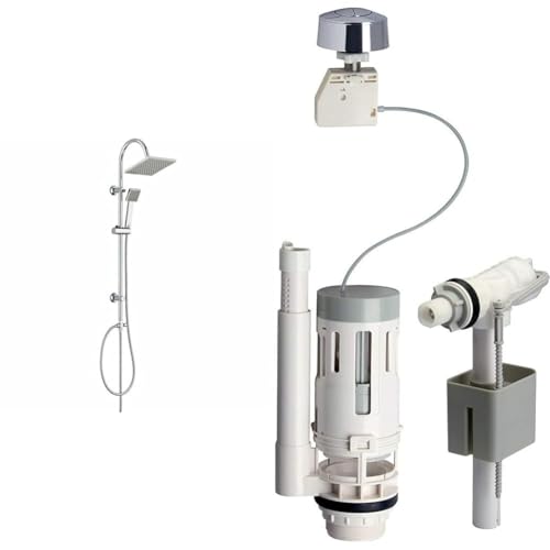 Edouard Rousseau - Colonne de Douche Soto - Tête de Douche Orientable, Picots Anticalcaire & Ensemble Mécanisme de Chasse d’Eau Double Débit à Bouton Poussoir + Robinet