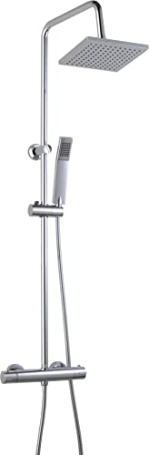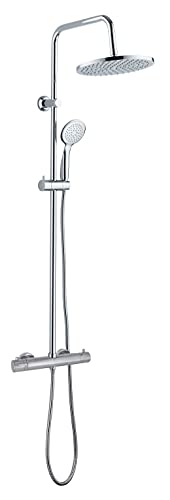 Edouard Rousseau - Mitigeur Thermostatique Bain-Douche Volga 2 - Remplissage Rapide & JOHO Colonne de Douche Chromé Ensemble de douche en acier inoxydable avec pommeau de douche en ABS