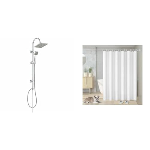 Edouard Rousseau - Colonne de Douche Soto - Tête de Douche Orientable, Picots Anticalcaire & Vinabo Rideau Douche Anti Moisissure, 180 x 200cm Blanc, avec 12 Crochets, sans Percage