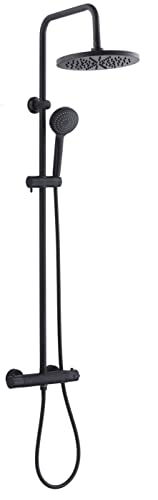 Edouard Rousseau - Colonne de Douche Pagan - Tête de Douche Orientable, Picots Anticalcaire, Sécurité Anti-Brûlure - Flexible 1,50 m - Noir