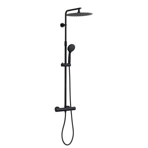 Edouard Rousseau - Colonne de Douche Thermostatique HIRAMÉ - Tête 300 mm Orientable Extra-Plate - Douchette 3 Jets - Sécurité 38°C - Noir