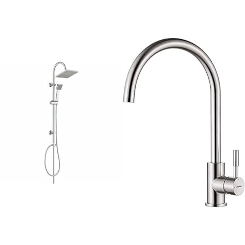 Edouard Rousseau - Colonne de Douche Soto - Tête de Douche Orientable & GRIFEMA G4008, Robinet de Cuisine ColdStart, Mitigeur Chaud et Froid à Poignée Unique, Rotation à 360°, Sortie d'Eau