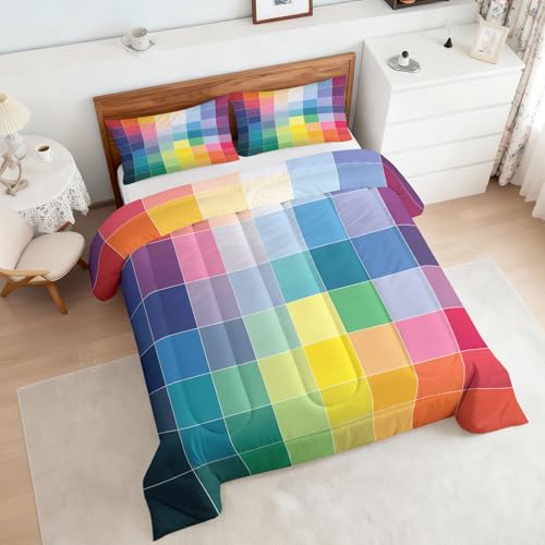 Générique Couette Carreaux 140x200, Motif Coloré 4 Saisons Imprimée Couette 1 Personne Hiver Tres Chaude Anti Acarien, Parure De Lit Edredon Enfant Adulte