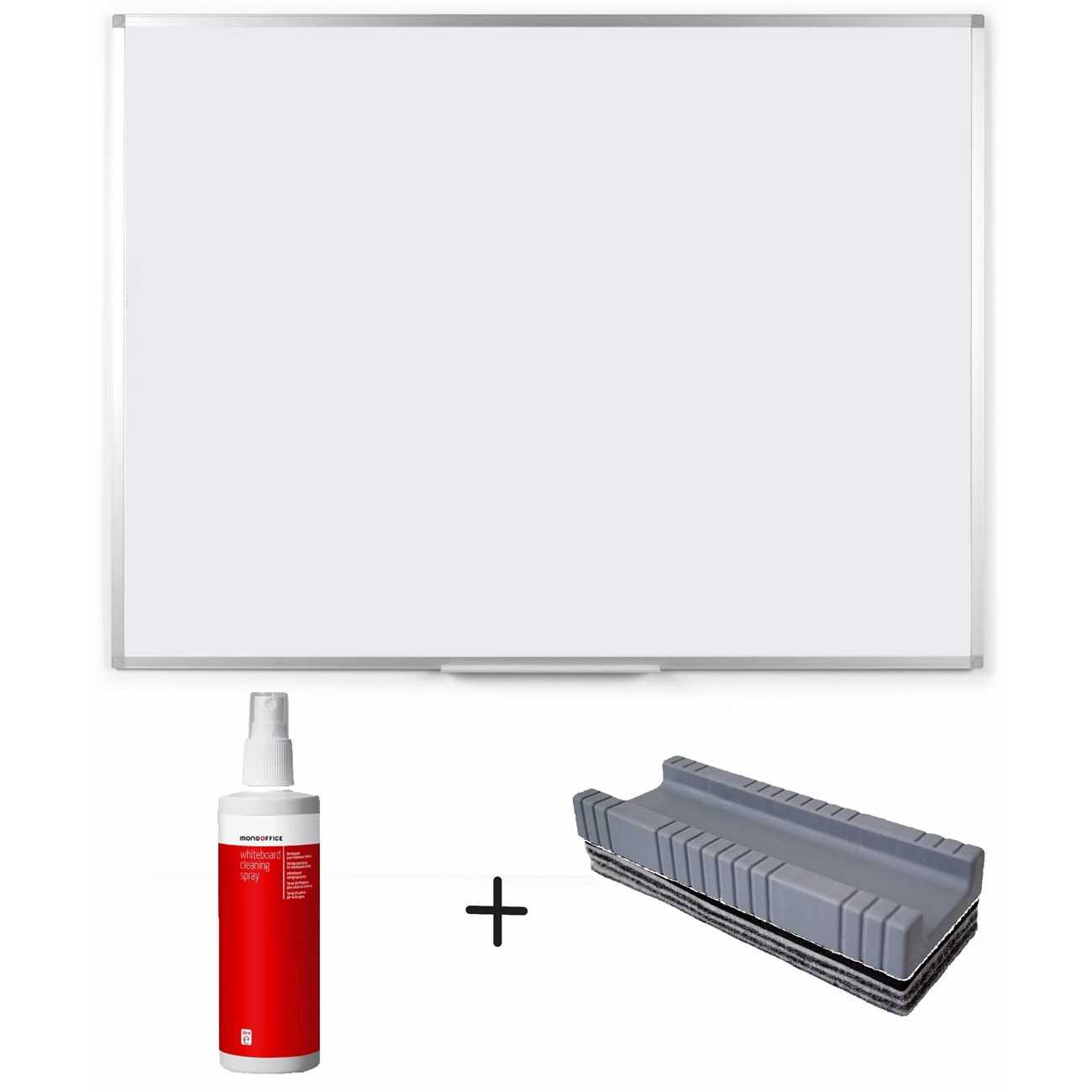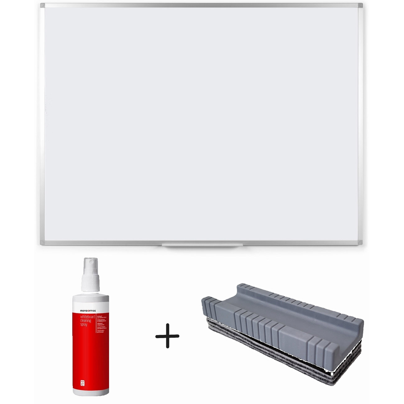 MONDOFFICE Tableau blanc émaillé - L.120 x H.90 cm Magnétique - Spray nettoyant + Brosse Effaceur offerts