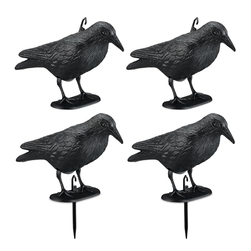 Relaxdays Corbeau Anti-Pigeon, Lot de 4, à Poser et Suspendre, effaroucheur Oiseaux, pour Jardin et Balcon, Noir