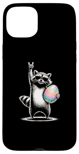 Funny Raccoon Rock on Easter Egg Coque pour iPhone 15 Plus
