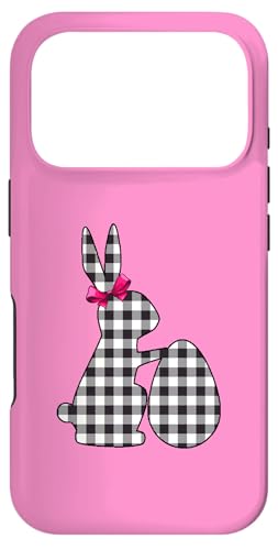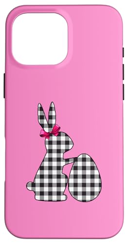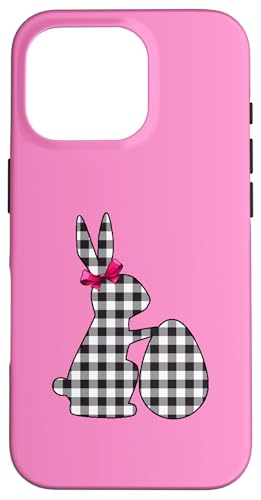 Bunny Buffalo Chemise Noire à imprimé écossais Happy Easter Bunny Egg Coque pour iPhone 16 Pro