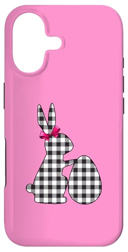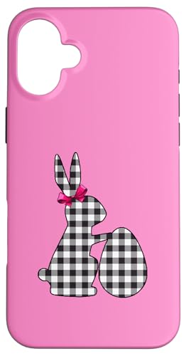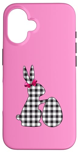 Bunny Buffalo Chemise Noire à imprimé écossais Happy Easter Bunny Egg Coque pour iPhone 16 Plus