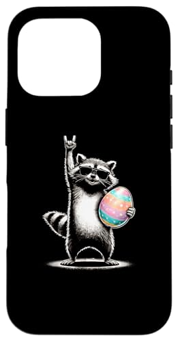 Funny Raccoon Rock on Easter Egg Coque pour iPhone 16 Pro