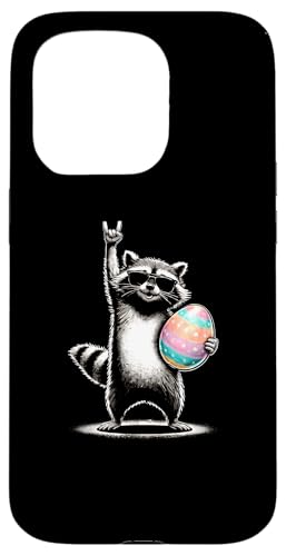 Funny Raccoon Rock on Easter Egg Coque pour iPhone 15 Pro