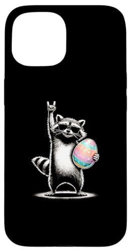 Funny Raccoon Rock on Easter Egg Coque pour iPhone 15