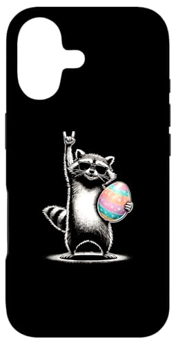 Funny Raccoon Rock on Easter Egg Coque pour iPhone 16