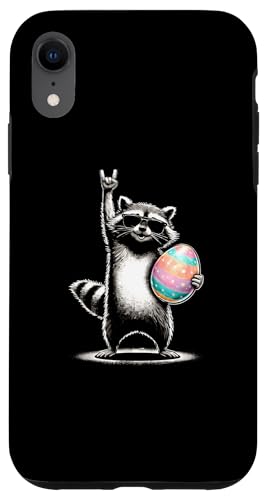 Funny Raccoon Rock on Easter Egg Coque pour iPhone XR