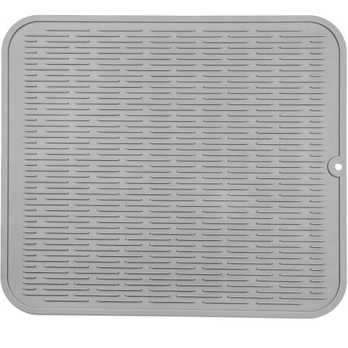 HONZUEN Tapis Egouttoir Vaisselle, Silicone Pliable 50×40cm, Tapis evier Cuisine Antidérapant et Résistant à la Chaleur, Tapis Vaisselle Absorbant pour Plan de Travail et Séchage Rapide, Gris