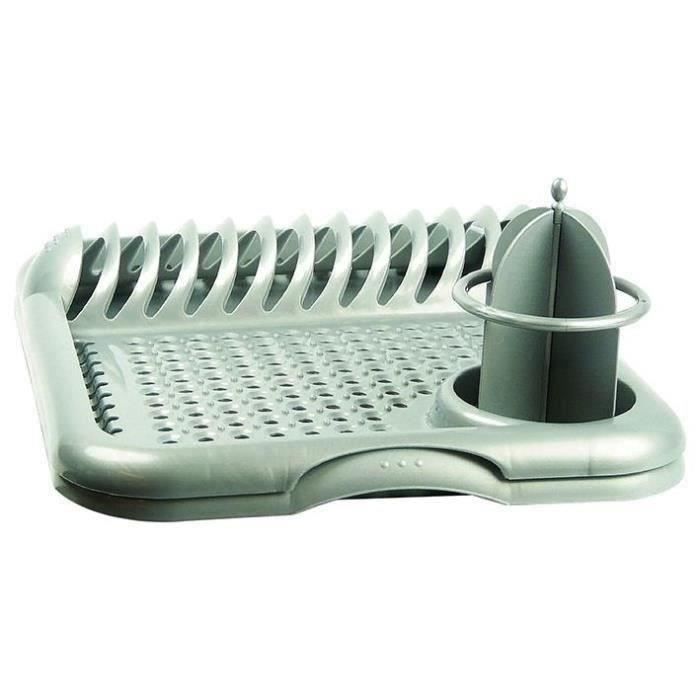 Egouttoir à vaisselle + plateau - ALUMINIUM ET PLASTIQUE - 48x35.5 cm - gris