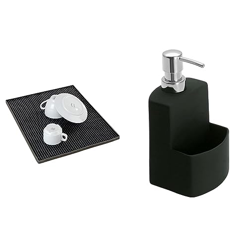 WENKO Tapis Egouttoir, Egouttoir Vaisselle, Maxi, 40x30 cm, Noir & Distributeur de Liquide Vaisselle Festival, Distributeur de Savon, céramique Haut de Gamme avec Surface Douce au Toucher
