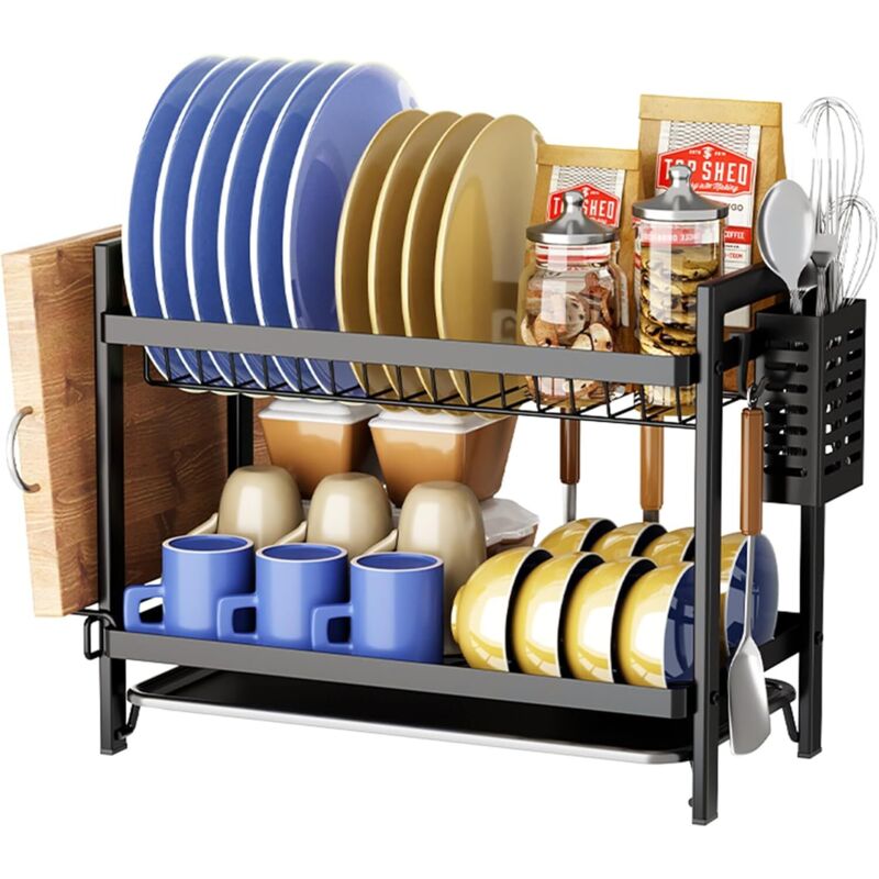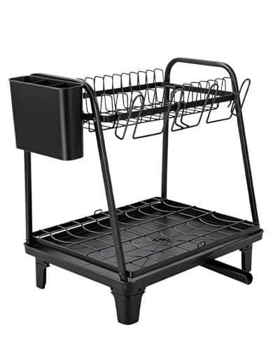 Sekey Egouttoir Vaisselle 2 Niveaux – Gain de Place, Porte-Couverts, Résistant à la Rouille et Sécurité Alimentaire, Design Noir pour Évier et Plan de Travail