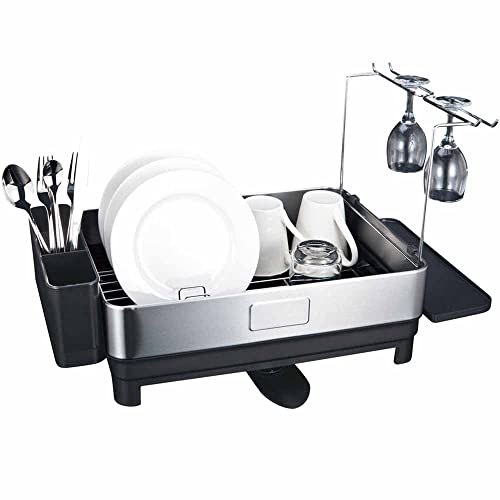 kingrack Egoutoire Vaisselle Cuisine, Égouttoir à Vaisselle Extensible, Égouttoir Vaisselle en Acier Inoxydable avec Porte-Couverts, Egouttoir Vaisselle Pliable avec Bec de Drainage