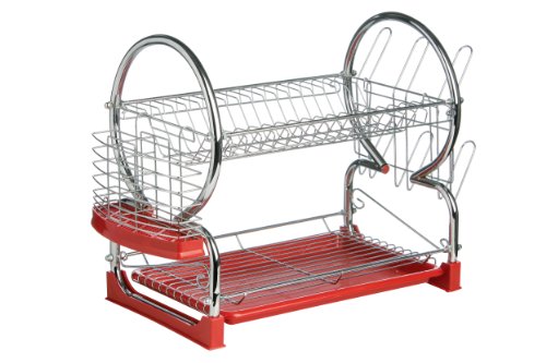 Premier Housewares 0509586 Egouttoir à Vaisselle de 2 Niveaux Plastique Rouge