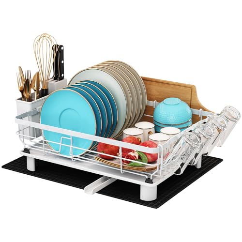 Cozary Egouttoir à Vaisselle, Egoutoire Vaisselle Cuisine Extensible(28-47CM), Égouttoir avec Porte-Couverts