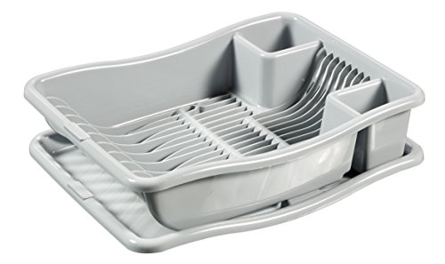 Curver Egouttoir à Vaisselle 18 Assiettes avec Plateau - 29 x 10,5 x 39 cm - Gris