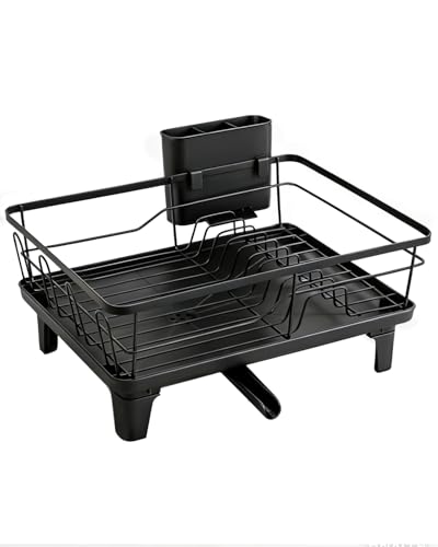 edihome, Egouttoir Vaisselle, Egoutoire Vaisselle Cuisine, sur Evier, Noir, INOX, Égouttoir Couvert, Dish Rack, Drying Rack, Buse Rotative 360° (1 Niveau)