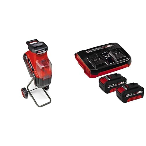 Einhell Broyeur de végétaux sans fil REDAXXO 36/25 Power X-Change (36V, épaisseur de branche max. 25 mm, 3 lames réversibles en acier, sac collecteur de déchets 55L) + Twincharger et 2 Batteries 4,0Ah