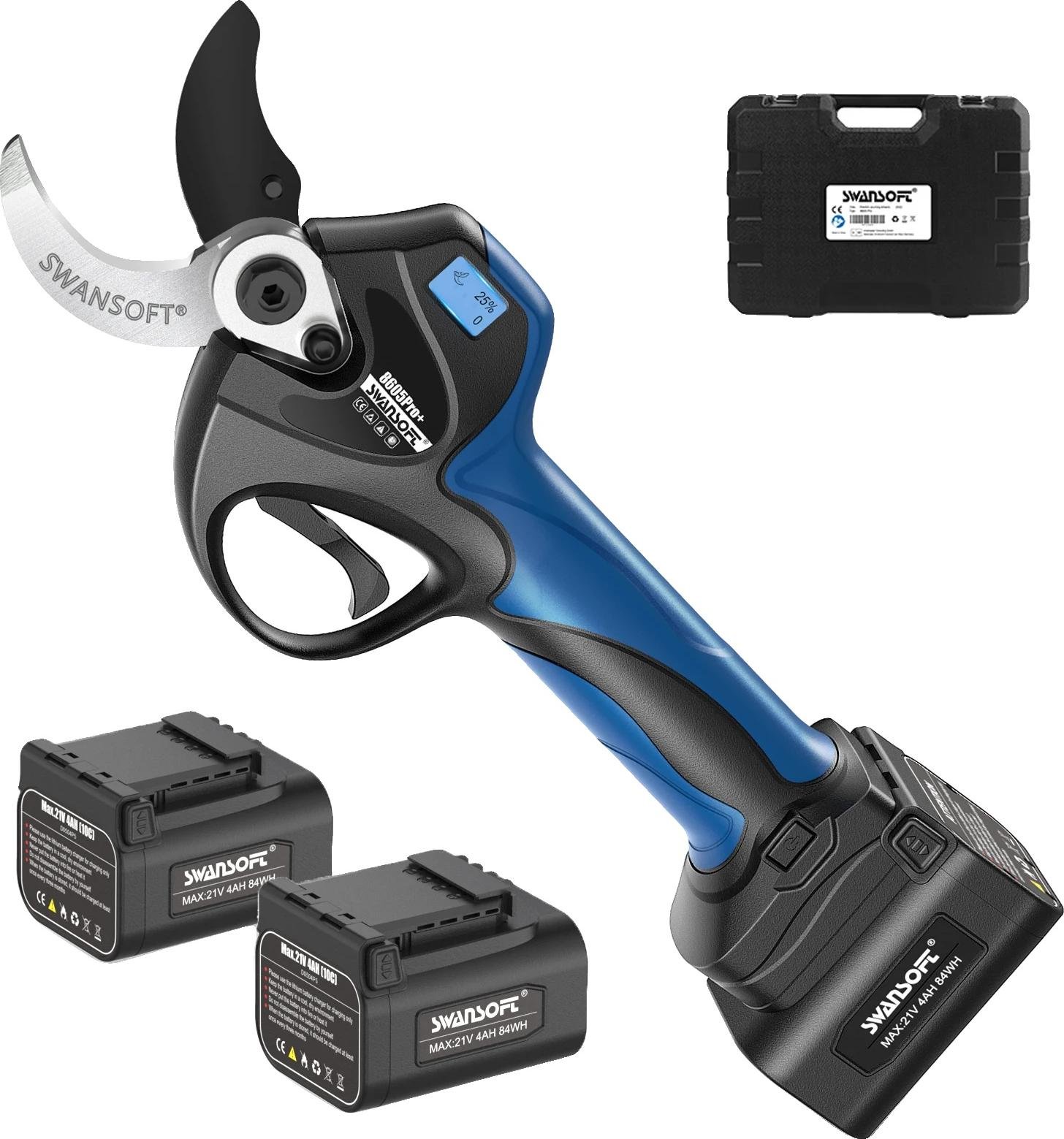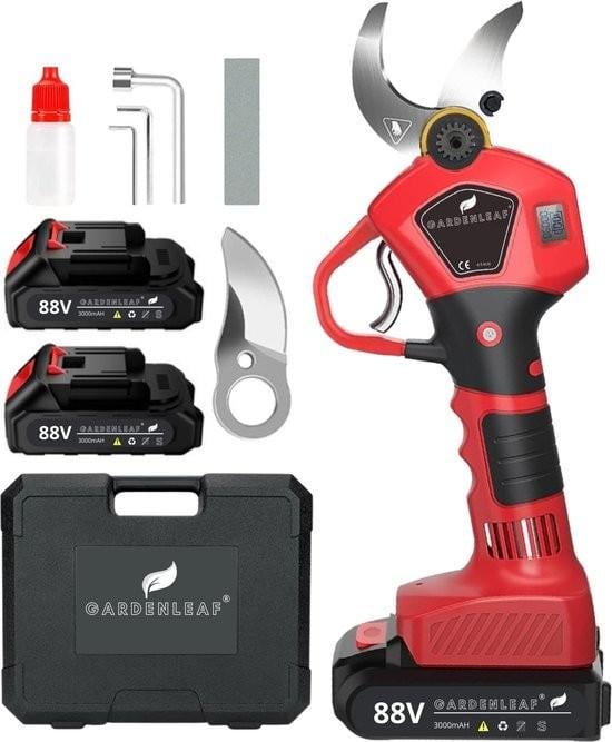 GardenLeaf® Sécateur électrique - 50 mm - Taille-haies - Elagueur - Affichage LED - Kit professionnel - Lame de rechange incluse - 2000 Watt