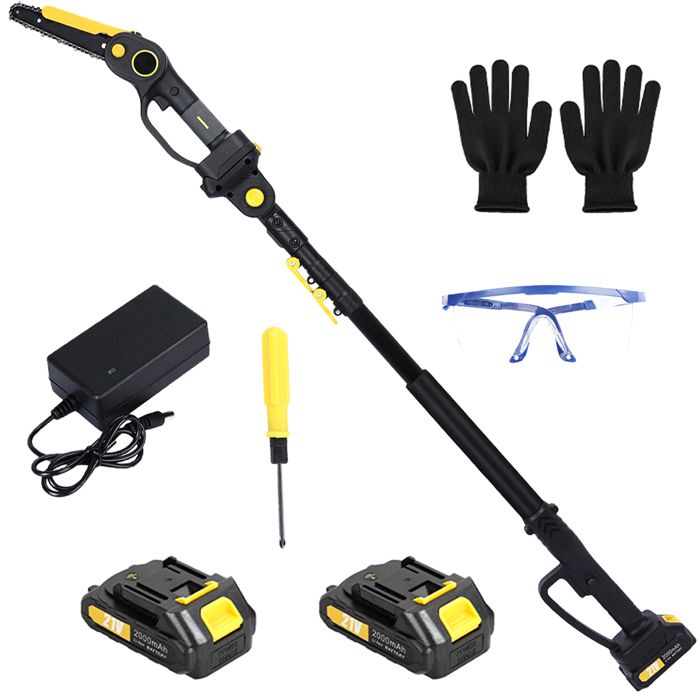 Tronçonneuse électrique sans fil Élagueur sur perche 2-en-1 Mini tronçonneuse - 2 Battery Adjustable Pole