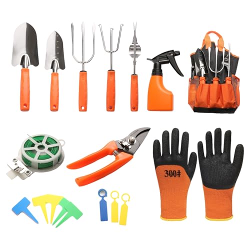 Ensemble d'outils de jardinage | Râteau élagueuse avec gants inclus | Outils à main avec de transport | Pour utilisation en extérieur, pelouse, arrière-cour, balcon, serre, E