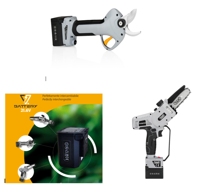 Ciseau KV380 Et Perche Élagueuse KVS5700 Ensemble Batterie VOLPI ORIGINALE Avec