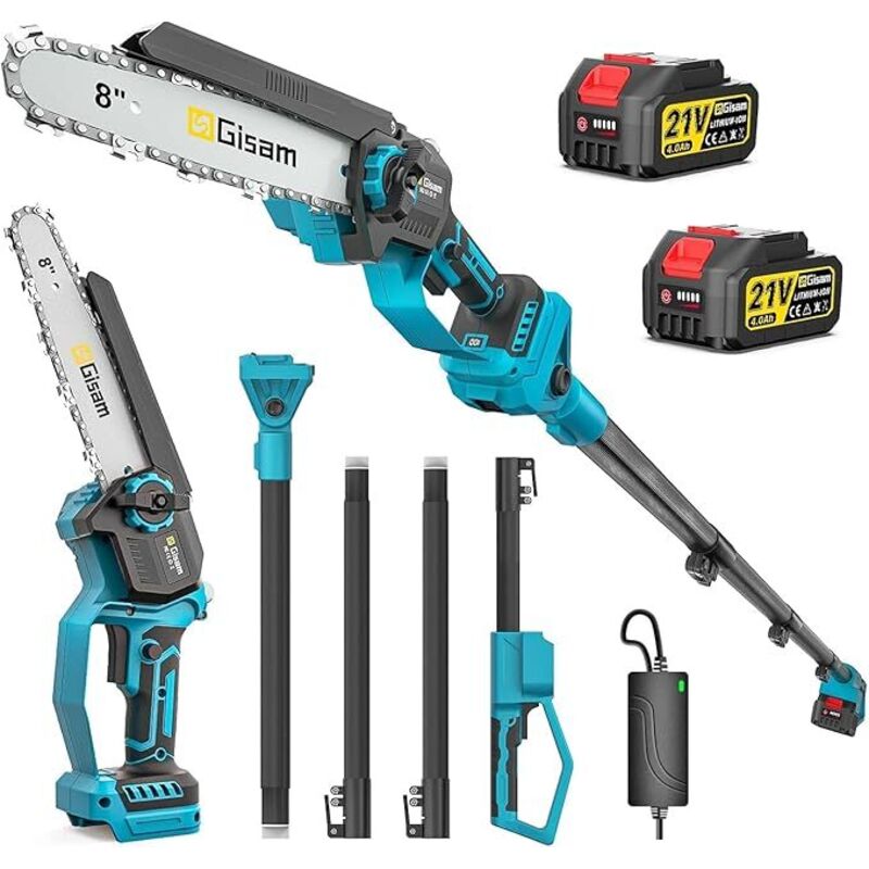 2 en 1 Tronçonneuse électrique - Élagueuse électrique sur perche - 21V - 2 batteries de 20 Ah - hautes réglable - 218cm