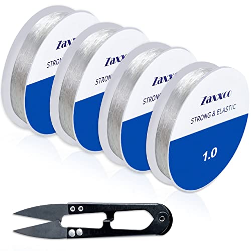 Zaxxco Fil Elastique pour Bracelet 4 Rolls 0.5mm, 0.7mm, 0.8mm, 1.0mm Fil Elastique pour Bracelet Resistant – Résine 4 Tailles Différentes + Cutter Offert – Idéal pour Créer Ses Bijoux