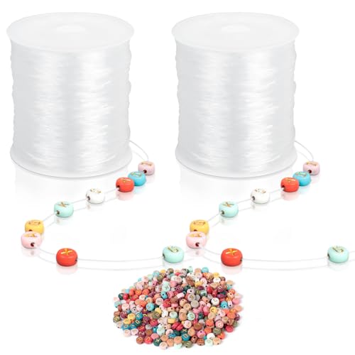 AiQInu 240m Fil Élastique pour Bracelets Transparent, Fil pour Bracelet Perle Fil pour Bracelet Fil Transparent Elastique pour Bracelet, Pearl, Artisanat (2 Rouleaux + Perles Alphabet)